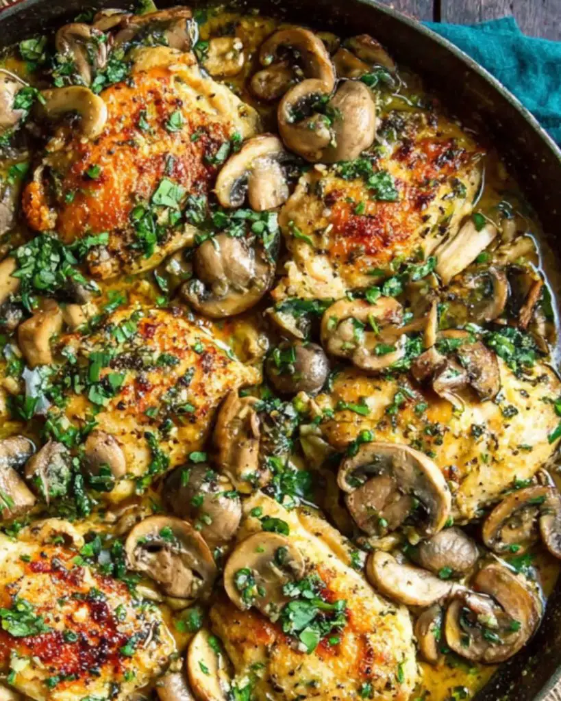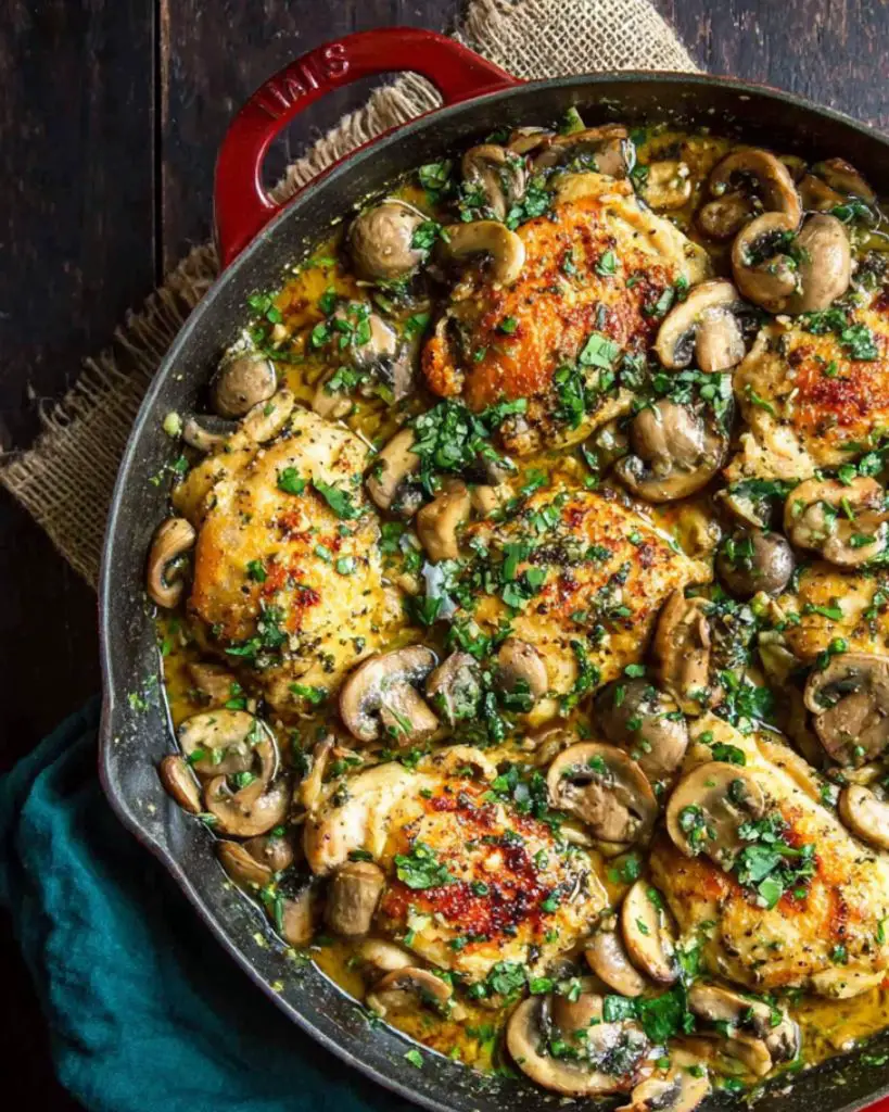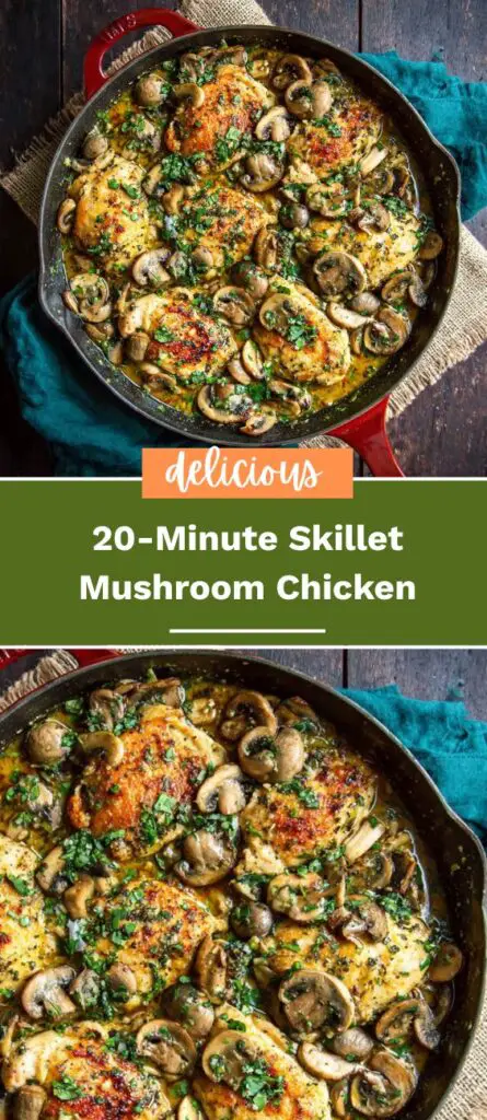 This 20-minute skillet mushroom chicken recipe features tender chicken cutlets cooked in a savory mushroom sauce with garlic, green onions, and chicken broth. Quick and easy, it’s perfect for weeknight dinners and pairs well with rice, pasta, or roasted vegetables for a complete meal.
