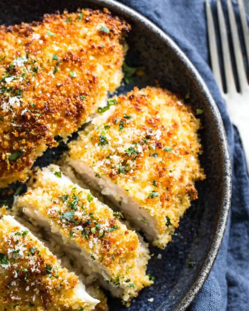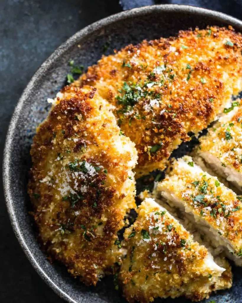 This Baked Parmesan Crusted Chicken is golden, crispy, and bursting with flavor. Thin chicken filets are coated in a mixture of panko breadcrumbs, parmesan, garlic, and Italian herbs, then baked to perfection. It’s an easy, healthier alternative to fried chicken, perfect for weeknight dinners or entertaining guests.