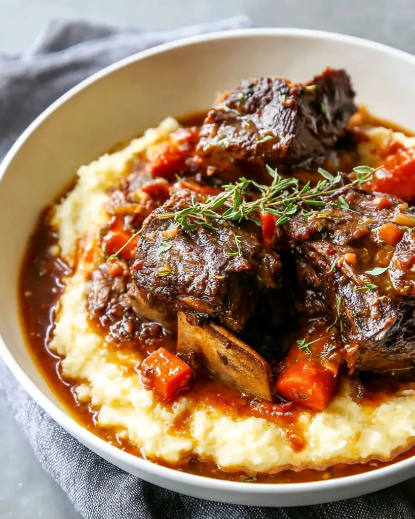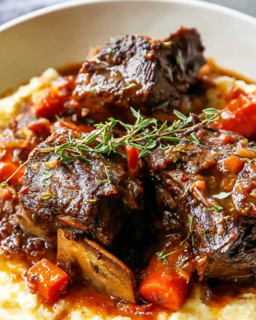 These braised short ribs are rich, tender, and packed with deep, savory flavors. Slow-cooked in red wine, beef broth, and aromatic herbs, the meat becomes fall-off-the-bone tender, perfect for a comforting dinner or special occasion.