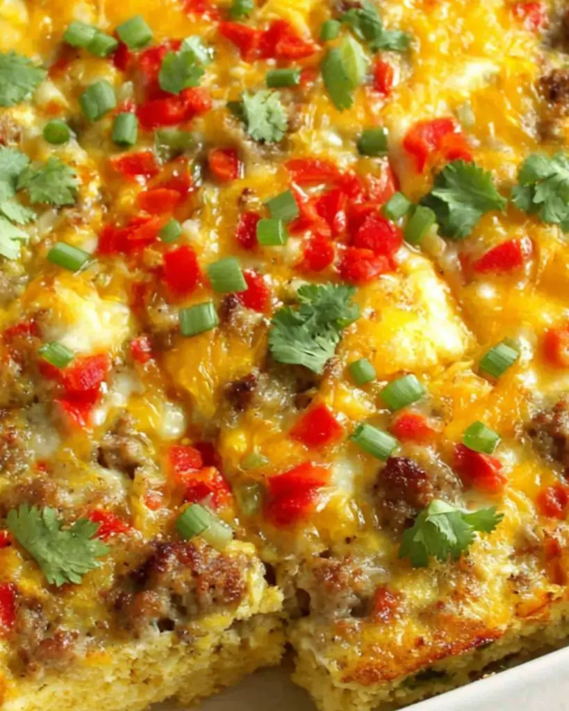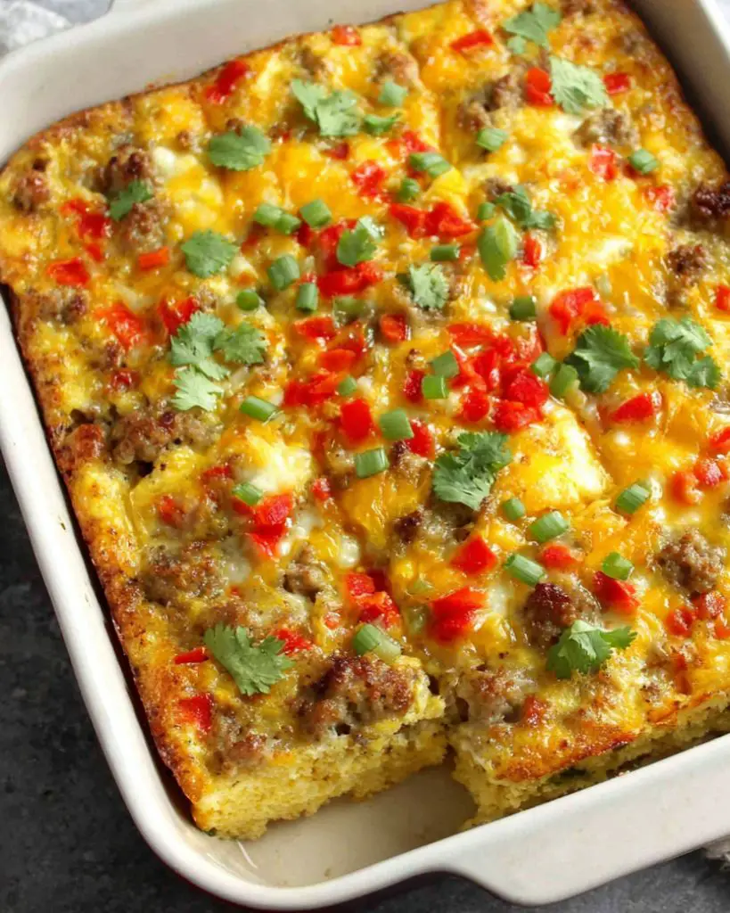 Start your morning right with this hearty Breakfast Casserole loaded with savory sausage, fluffy eggs, melty cheese, and colorful veggies. It’s easy to prepare, crowd-pleasing, and perfect for busy mornings, brunch gatherings, or meal prep.