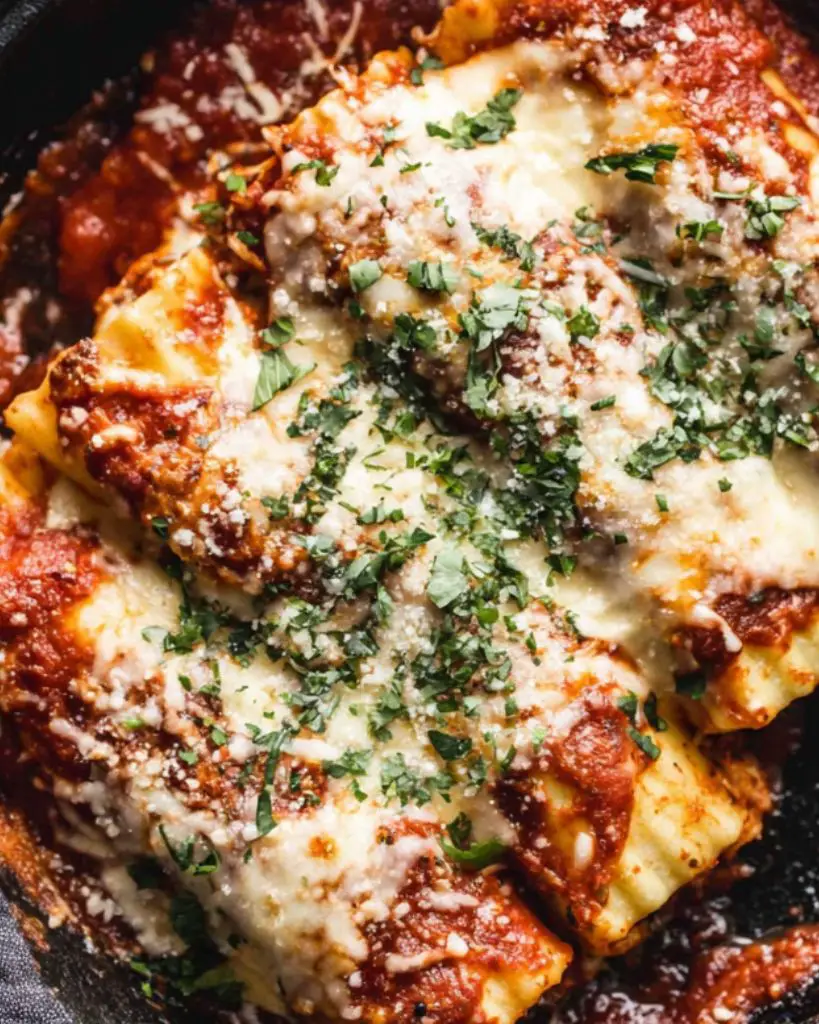 - Classic Italian dish with a creamy, cheesy filling and rich marinara sauce.