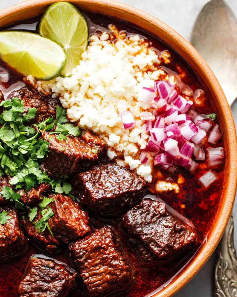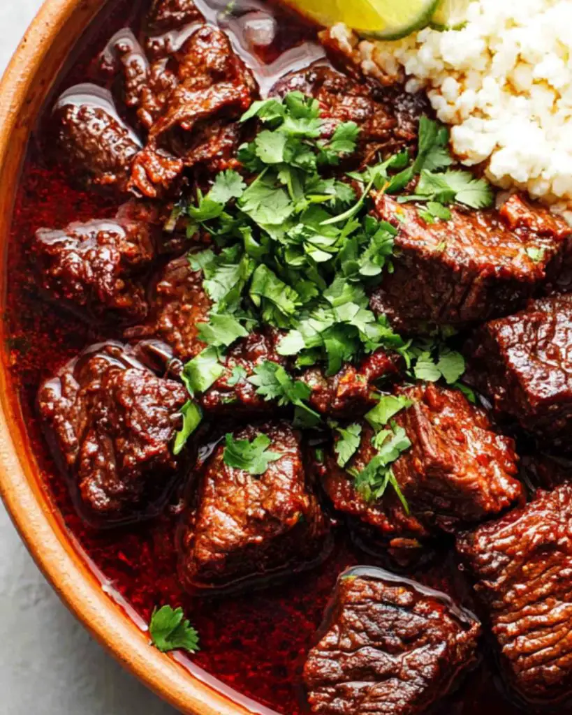 This Chile Colorado is a rich, flavorful Mexican stew featuring tender beef simmered in a smoky, slightly spicy red chile sauce. Perfect for tacos, bowls, or simply dipping warm tortillas, it’s a comforting and vibrant dish that brings authentic Mexican flavors to your table.