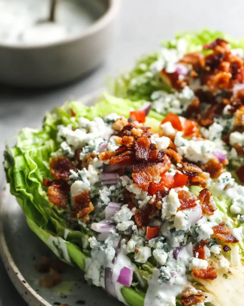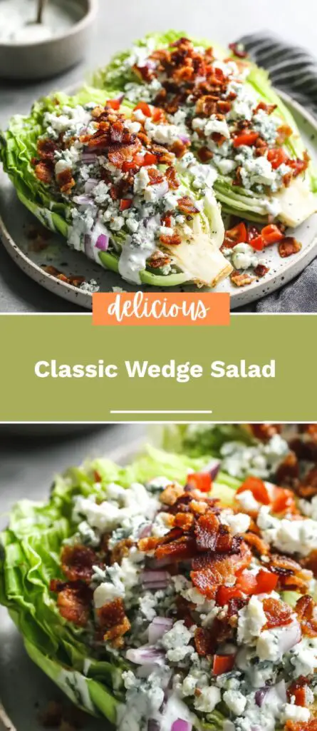 This Classic Wedge Salad is a timeless favorite crisp iceberg lettuce wedges topped with smoky bacon, juicy tomatoes, red onion, toasted nuts, and a creamy homemade blue cheese dressing. It’s simple yet elegant, making it perfect for both everyday meals and dinner parties.