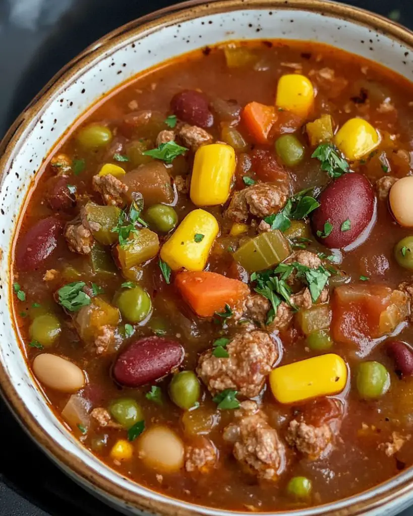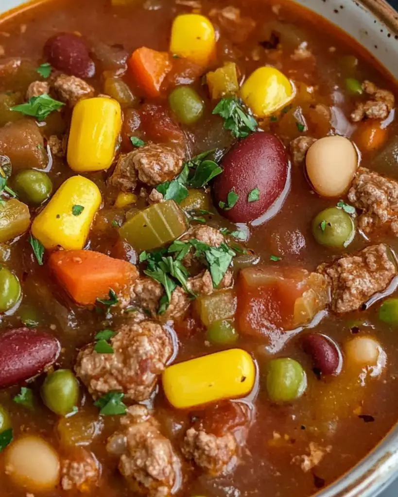 - Hearty and Filling: Packed with ground beef, sausage, beans, and potatoes, this stew is a satisfying meal that’s sure to keep you full.