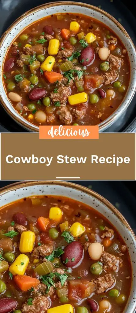 This Cowboy Stew recipe combines hearty ground beef, smoked sausage, crispy bacon, and a variety of vegetables in a rich, flavorful broth. It’s the perfect comfort food for cold nights or a family-friendly dinner. With a mix of chili powder, cumin, and smoked paprika, this stew offers a satisfying depth of flavor. The combination of beans, corn, and potatoes makes it a filling, one-pot meal. Ideal for meal prep, this dish can be stored in the fridge for up to three days and even freezes well. Serve it with crusty bread or over rice for a complete meal.