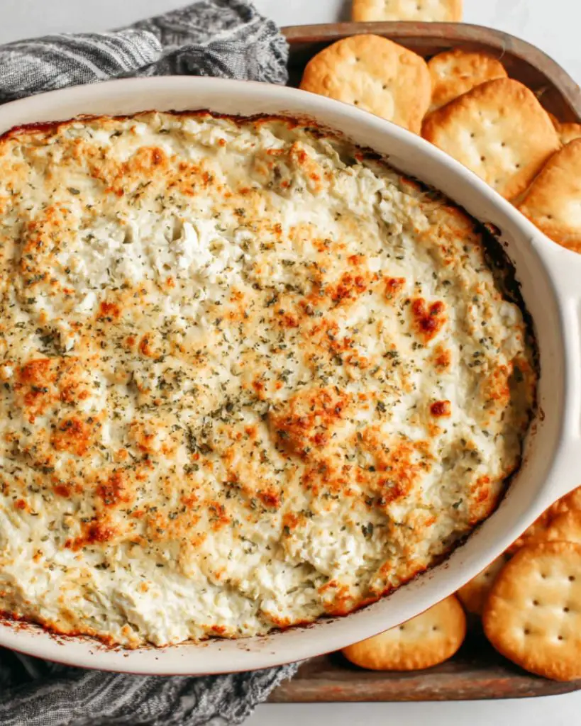 Bake for 20 minutes, or until the dip is hot, bubbly, and lightly golden on top. Serve warm with crackers, crusty bread, or fresh vegetables.