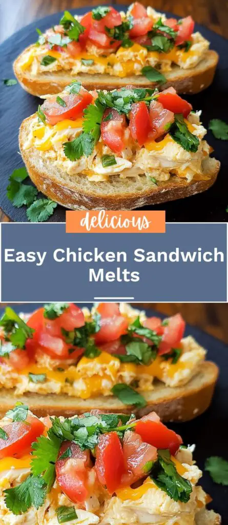 Easy Chicken Sandwich Melts recipe with shredded chicken, creamy mayo, fresh tomatoes, and melted cheddar cheese. Perfect for quick lunch ideas, simple weeknight dinners, and crowd-pleasing appetizers. Made with canned chicken breast and homemade seasoning for fast preparation and bold flavor. Serve warm with fresh herbs for a tasty, cheesy chicken sandwich everyone will love.