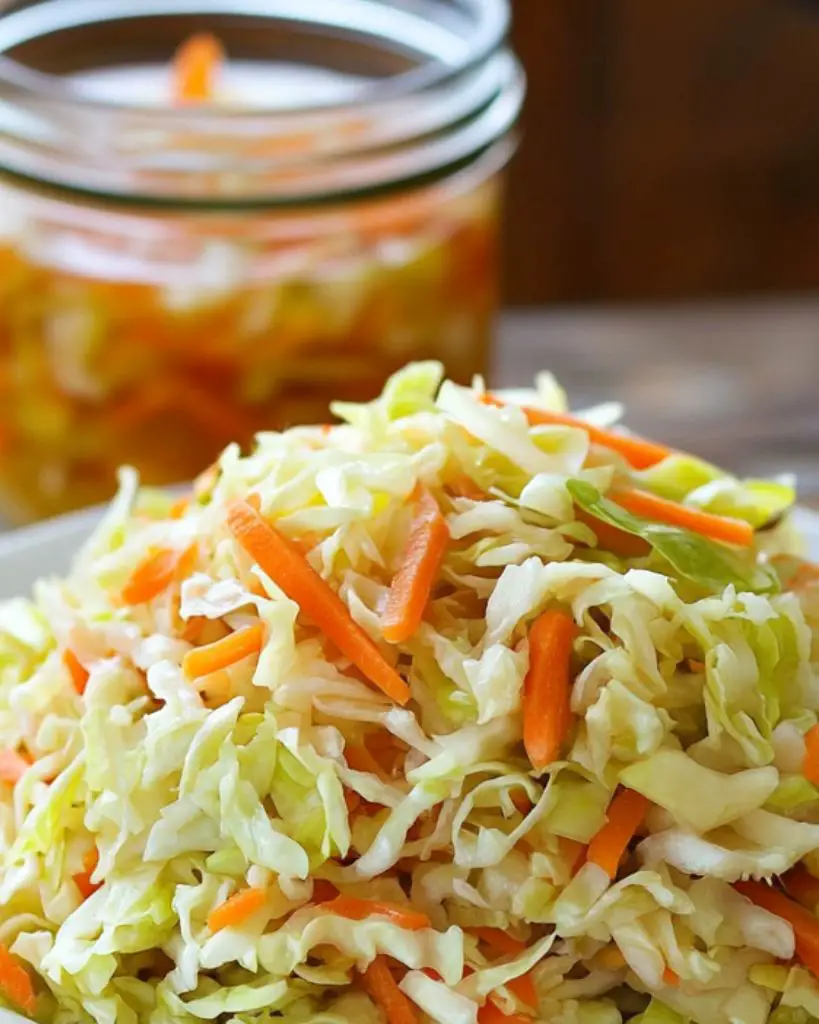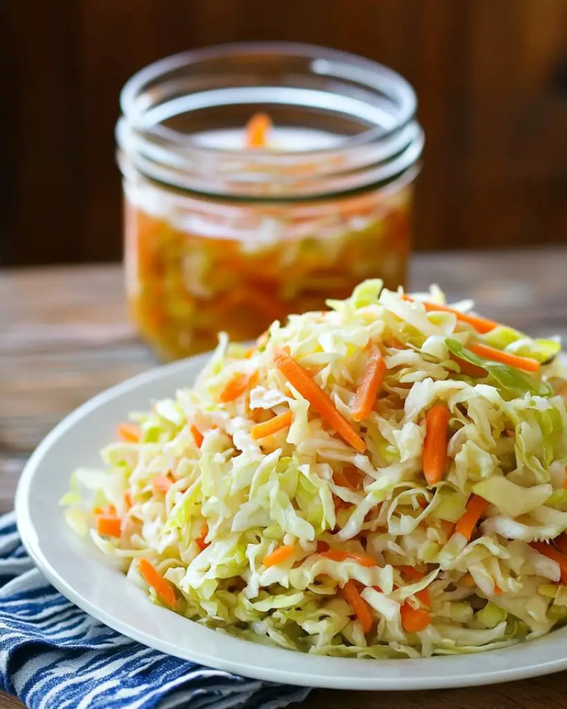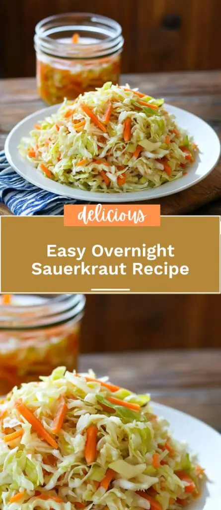 This easy overnight sauerkraut recipe combines fresh cabbage, carrots, garlic, and a flavorful homemade marinade to create a tangy, crunchy side dish. With minimal preparation and an overnight refrigeration process, this sauerkraut is the perfect accompaniment to meats, sandwiches, and salads. Using simple ingredients like vinegar, olive oil, and spices, this recipe is an excellent way to make your own fermented food at home. Healthy, flavorful, and versatile, this sauerkraut can be stored for up to 3 weeks in the fridge. Perfect for meal prep or adding a tangy twist to your favorite dishes!