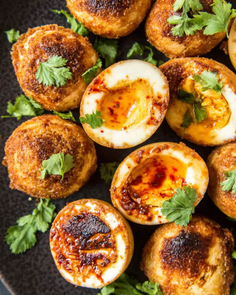 Crispy fried boiled eggs, a classic Egyptian breakfast recipe, cooked in ghee or butter for golden, flavorful whites and creamy yolks. Perfect for Mediterranean-style meals, these eggs pair well with fresh vegetables, cucumber and tomato salad, olives, and feta cheese. Quick and easy to prepare, this traditional Egyptian dish makes a protein-rich breakfast, brunch, or snack that is both satisfying and full of flavor.