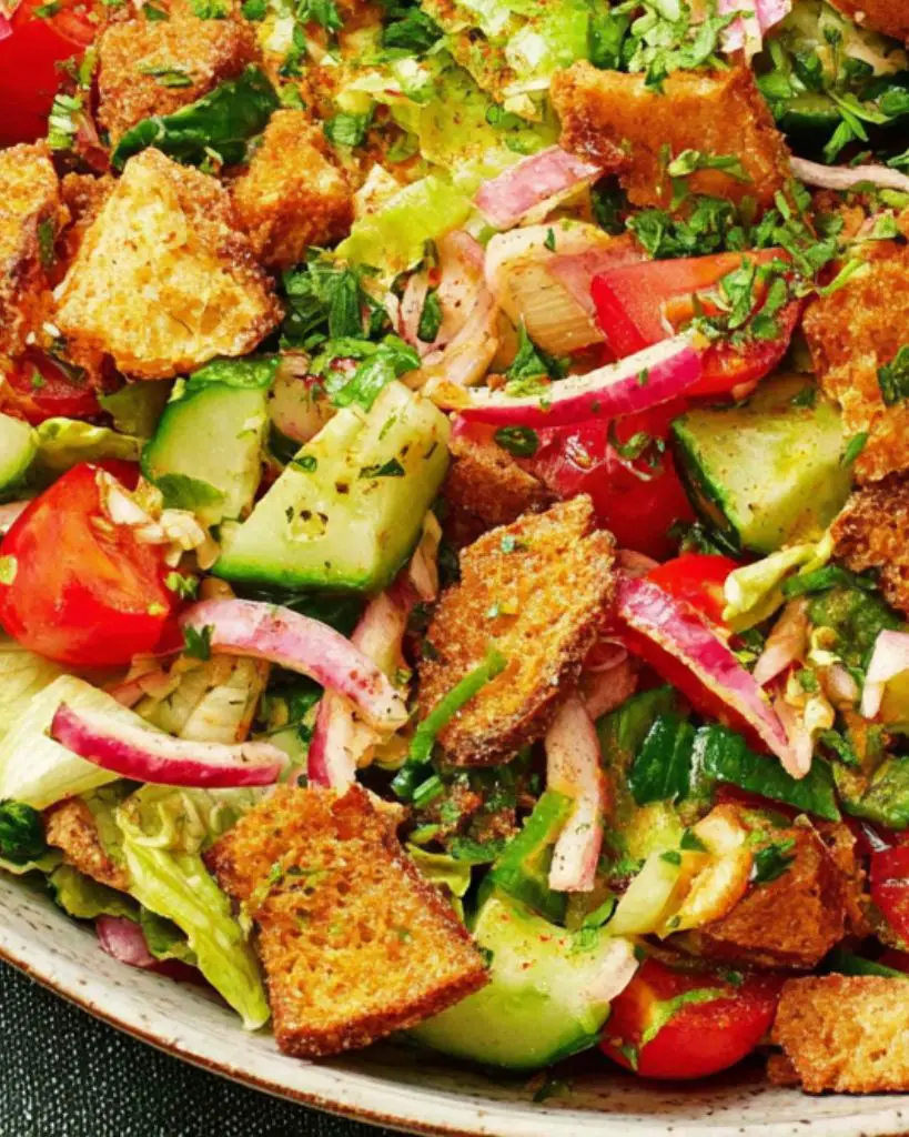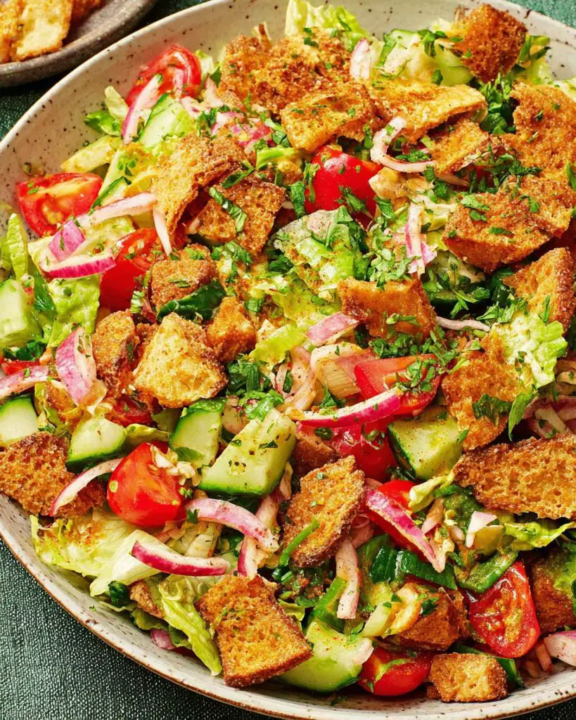Fattoush is a refreshing Middle Eastern salad bursting with flavor and texture. Fresh herbs, crisp vegetables, tangy dressing, and crunchy pita chips come together for a bright and satisfying dish that works as a starter, side, or light main.