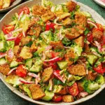 Fattoush is a refreshing Middle Eastern salad bursting with flavor and texture. Fresh herbs, crisp vegetables, tangy dressing, and crunchy pita chips come together for a bright and satisfying dish that works as a starter, side, or light main.