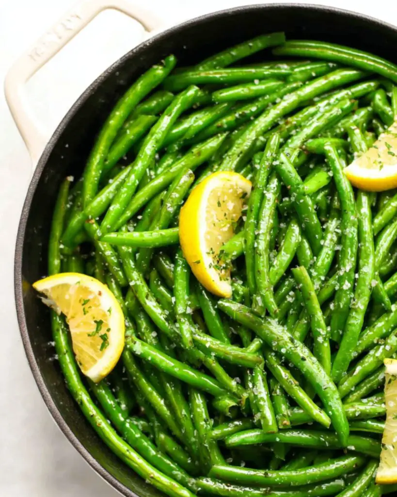 - Return the green beans to the skillet and toss to coat with the butter and shallots. Season with salt, black pepper, and a splash of lemon juice for brightness.