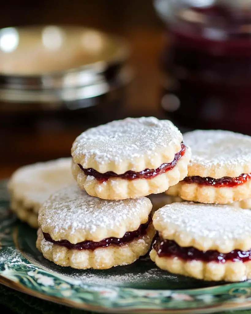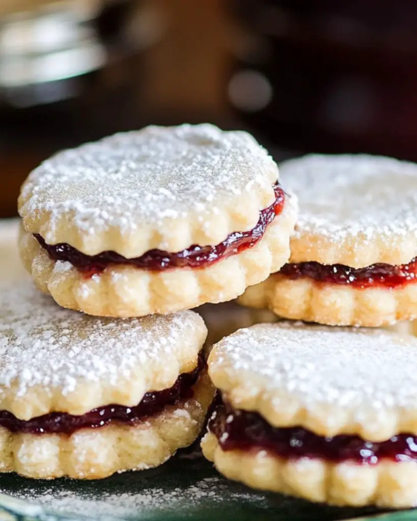 Serve these jam-filled sandwich cookies with tea or coffee for a delightful afternoon snack. They also make charming gifts when packed in decorative tins or boxes.