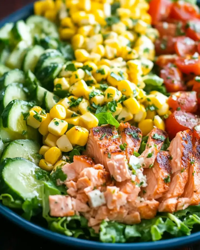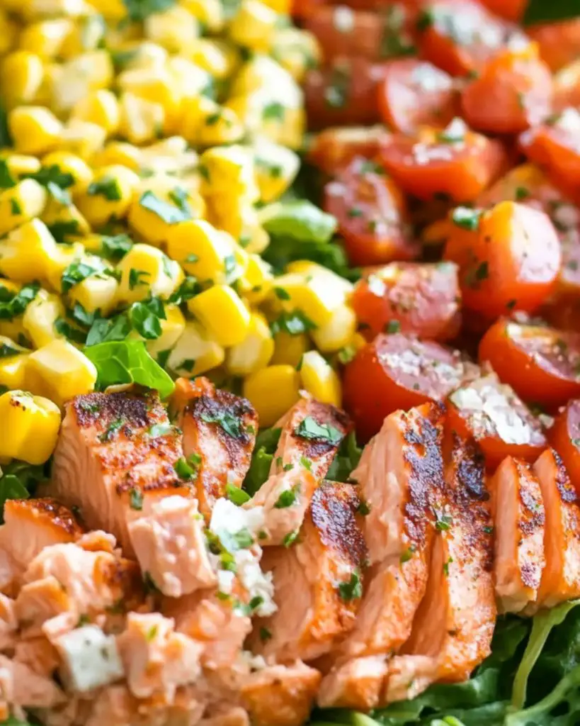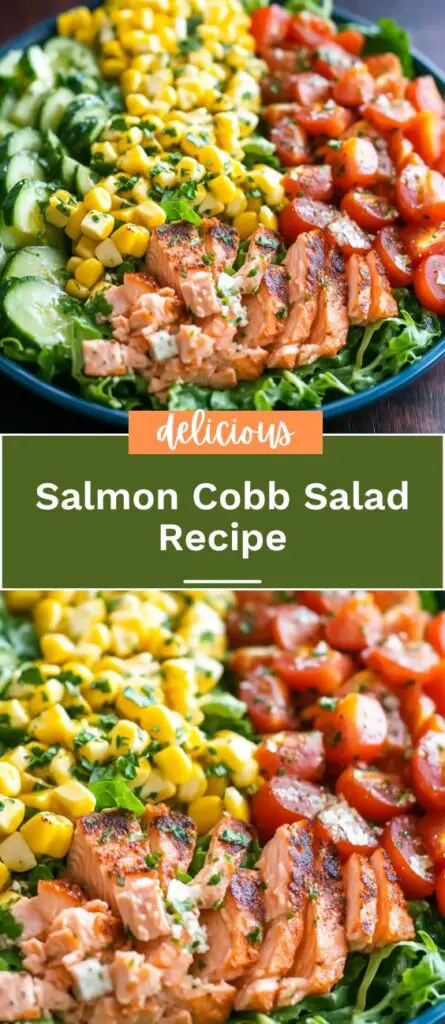 This vibrant and protein-packed Salmon Cobb Salad combines fresh, nutrient-rich ingredients with a zesty cilantro lime dressing. Perfectly cooked salmon is layered over crisp romaine lettuce, sweet corn, creamy avocado, and cherry tomatoes, creating a meal that’s both delicious and wholesome. This versatile salad is ideal for healthy lunches, meal prep, or a refreshing dinner. Whether you’re hosting guests or preparing a quick family meal, this recipe offers a flavorful and well-balanced dish that’s easy to prepare.