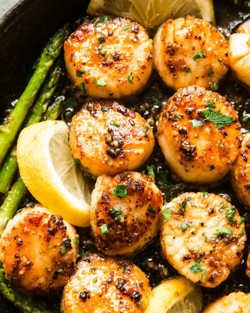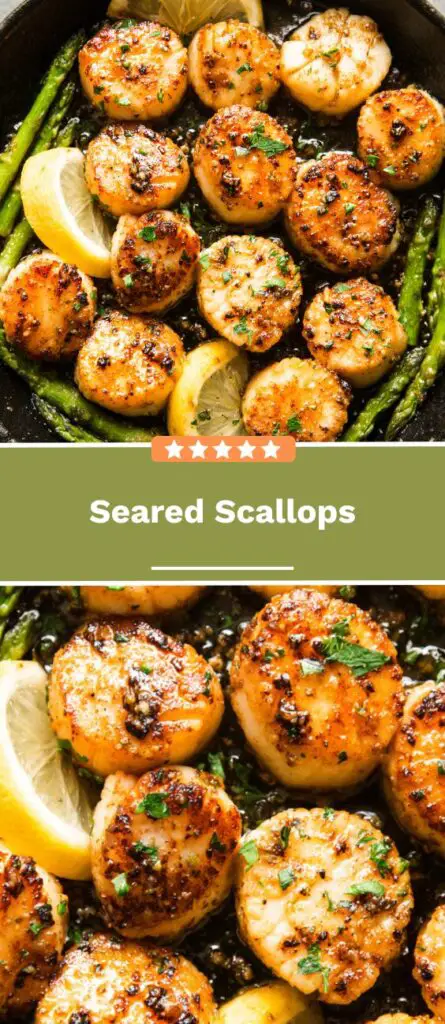 Serve Seared Scallops over creamy mashed potatoes, risotto, or pasta tossed with the garlic butter sauce. They also pair beautifully with roasted asparagus, sautéed spinach, or a light salad. For an elegant dinner, serve alongside a crisp white wine like Chardonnay or Sauvignon Blanc.