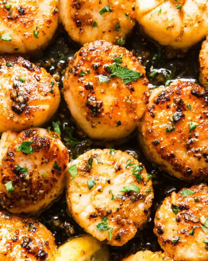 Seared Scallops with Garlic Butter Sauce recipe featuring perfectly golden, tender scallops cooked in butter and olive oil. Quick and easy seafood dinner with lemon, garlic, and fresh parsley. Ideal for weeknight meals, date night, or special occasions. Learn how to make restaurant-style seared scallops at home with a simple pan-seared method.