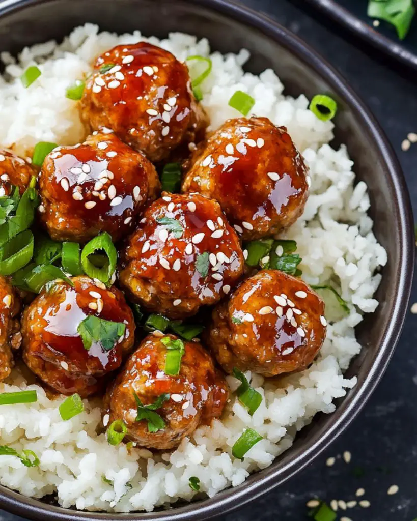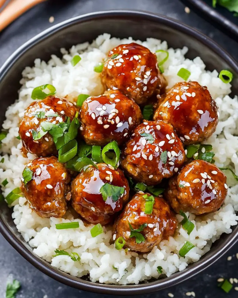 - Toss and Serve: Transfer the warm meatballs to a bowl, pour the teriyaki sauce over them, and toss gently to coat. Garnish with sesame seeds and sliced green onions. Serve over rice or noodles.