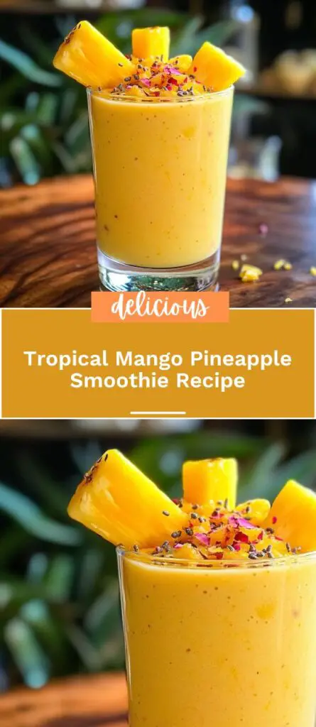 This Tropical Mango Pineapple Smoothie is a refreshing and healthy drink made with fresh fruits like mango, pineapple, banana, and clementines. Packed with vitamins and antioxidants, this smoothie offers a nutritious way to start your day or fuel up after a workout. With the added benefits of flax seeds for fiber and omega-3s, it’s a great option for anyone looking for a quick, natural energy boost. Whether you’re using almond milk or water, this smoothie is customizable to suit your preferences. Perfect for those who love tropical flavors and crave a healthy, easy-to-make snack!