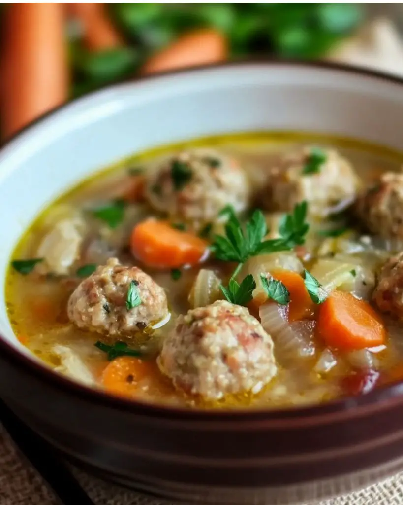 This hearty Turkey Meatball Soup features tender homemade turkey meatballs simmered in a flavorful broth with barley, potatoes, carrots, mushrooms, and white beans. Packed with protein and wholesome vegetables, this comforting soup is perfect for a nutritious family dinner or meal prep. Easy to make and loaded with fresh herbs and seasoning, it’s a satisfying bowl of warmth that’s great for cold days or anytime you want a healthy, filling meal.