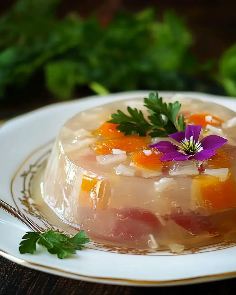 - Consistency: The broth should be just the right amount of liquid—too much water will affect the gelatinous texture of the aspic.