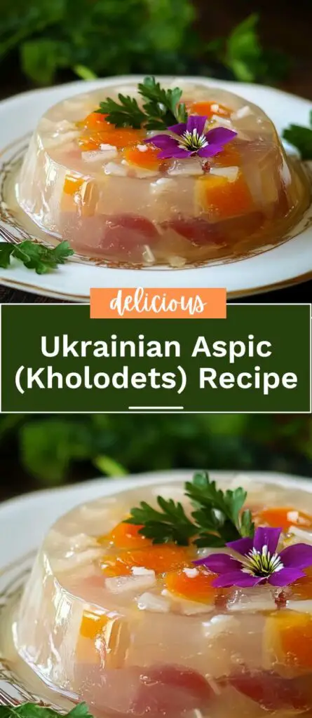 Create a traditional Ukrainian Kholodets with this simple and authentic recipe. This savory dish features tender meat encased in a flavorful gelatinous broth, making it a unique centerpiece for any table. Packed with rich flavors from slow-simmered pork, chicken, and aromatic vegetables, this dish highlights Eastern European culinary heritage. Perfect for festive occasions or as a nostalgic comfort food, this recipe offers detailed guidance to achieve the ideal texture and taste. Pair it with horseradish or mustard for an added zing and serve alongside hearty bread or pickled vegetables for a complete meal experience.